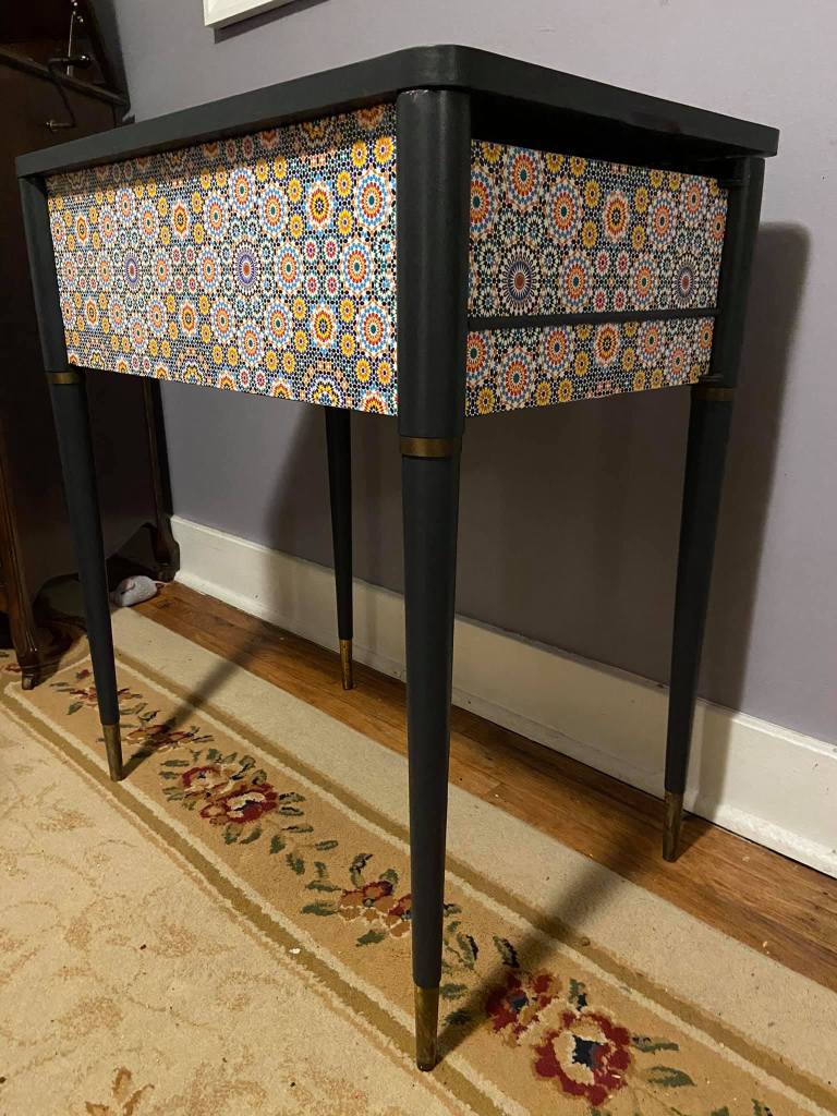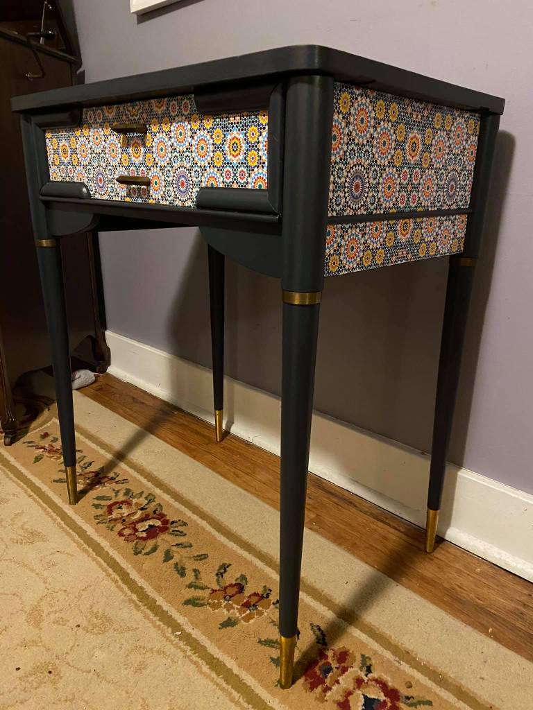 This sewing cabinet turned desk makes working from home way more fun (or at least colorful). This client loves Indian patterns I had so much fun researching to find the right print. You can view more photos here.
