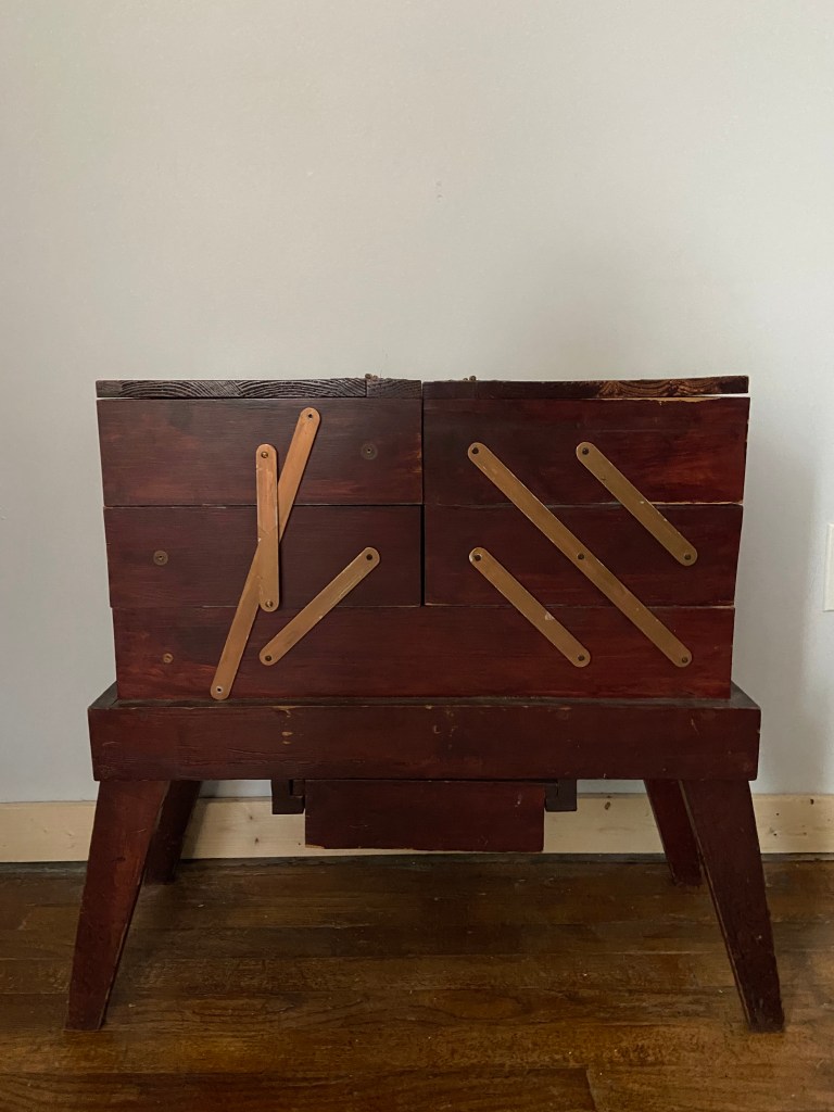 Couples project for the win! My better half and I found this accordion sewing storage at an antique center during an impromptu road trip, and decided it would be perfect to hold art supplies in our house. Also, named for a John Irving novel/one of my husband’s favorite movies, The World According to Garp. You can view more photos here.