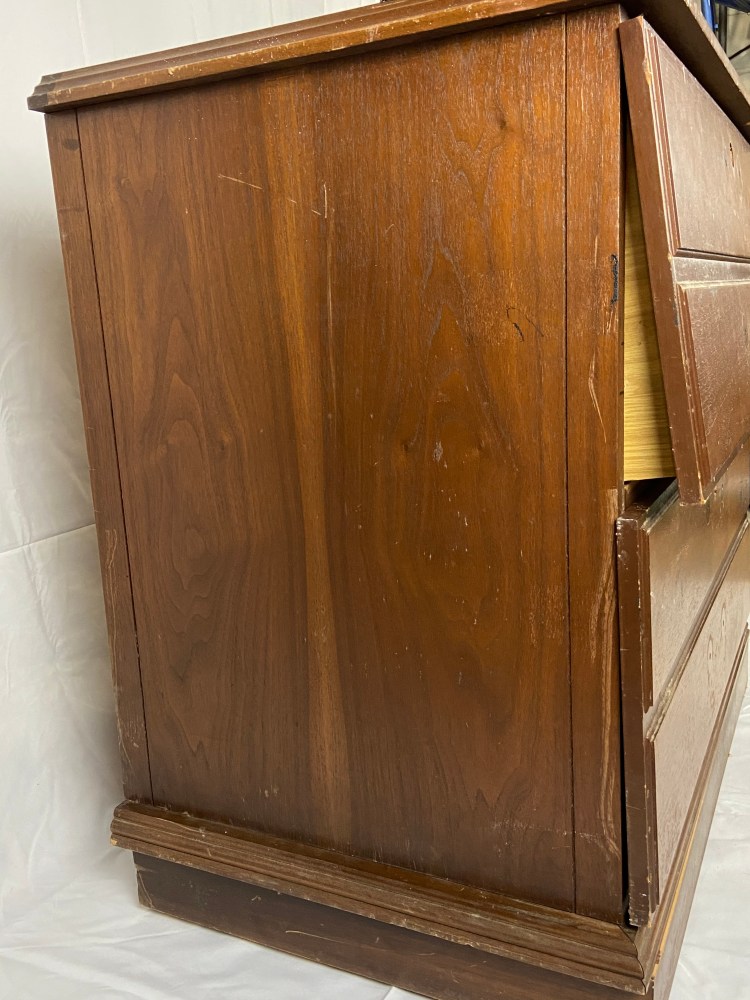 Free furniture can be hard to pass by, and I’m so glad I didn’t leave this one for someone else to snag. Shortly after it came home, my mom asked for a filing cabinet and I was thrilled to update this for her as a Mothers Day gift. This project was my first décor transfer, first stencil, and first time installing slide rails. View a video of this project here.