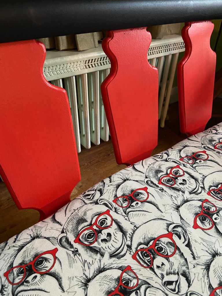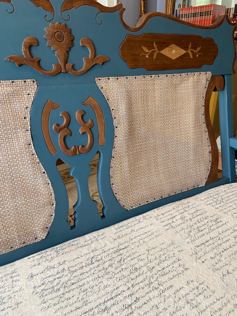 For this project, I found the fabric first. Having fallen in love with the print, I just needed the right piece and I was so excited to find this settee at a local antique dealer’s shop.