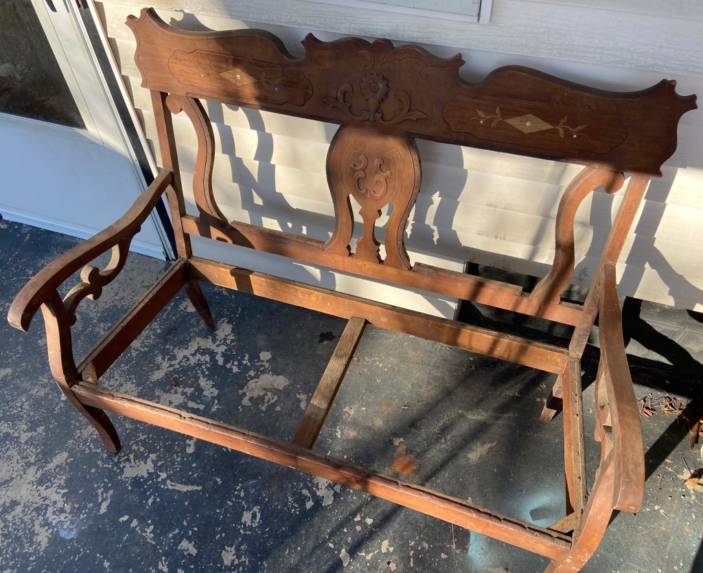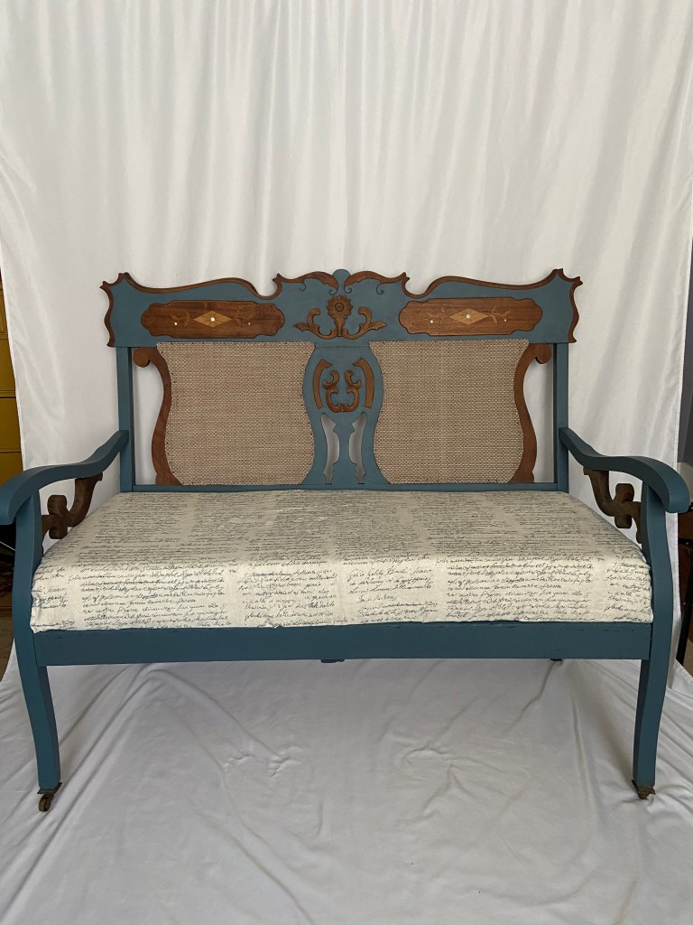What an absolute honor to work on this piece. A near and dear piece for the owner, whose wife purchased it decades ago with the intent of breathing new life into it, I was thrilled to be trusted with this bench. Work included stabilizing back legs and seat, and building a new cushion.