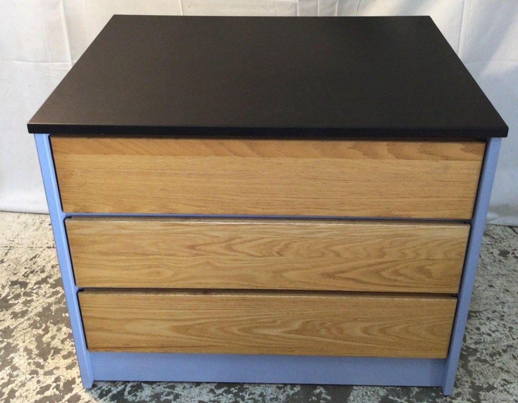 The piece shown is one of a series that was painted with a chalkboard top, so the kids to whom the dressers belong will always have a space to draw (chalk was included with each piece completed as well).